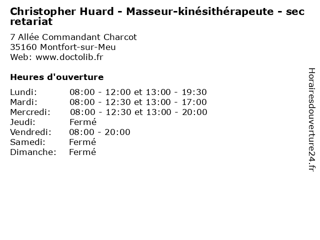 | Mercredi | 08:00-12:30 et 13:00-20:00 |