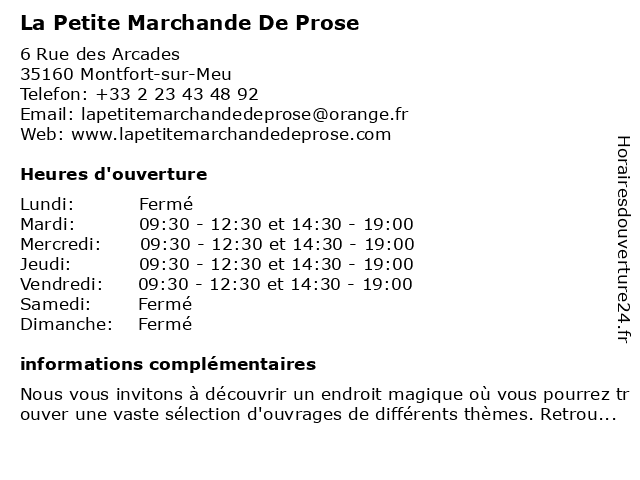 | Mardi | 09:30-12:30 et 14:30-19:00 |