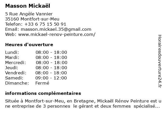 1 Mickaël Ivars - Masseur-kinésithérapeute - secretariat (Distance: 17,55 km) 10 Rue des Longrais, 35520 La Chapelle-des-Fougeretz ivars, kinésithérapeute, masseur, mickaël, médecin, médecine, médical, pharmaceutique, secretariat, traitement 2 Agence Mickaël Tanguy Architecte (Distance: 17,63 km) 8 La Renezerais, 35580 Goven agence, architecte, mickaël, tanguy 3 Maisons le Masson (Distance: 18,72 km) 16 rue de la Rabine, 35170 Bruz agences, constructeur, construction, le, maison, maisons, masson 4 Cabinet Mickaël Brunet (Distance: 19,55 km) 1 rue de la Terre Adélie, 35760 Saint Grégoire audit, brunet, cabinet, conseil, expertise comptable, fiscalité, gestion, juridique, mickaël, paie, social 5 Bio Crêp (Distance: 20,83 km) 34 Rue de Nemours, 35000 Rennes bio, crep, crêp, masson, restaurants, vincent 6 Romain Masson - Ostéopathe (Distance: 23,05 km) 6 Rue Eugène Quessot, 35200 Rennes actes et symptômes, expertises, masson, médecin, ostéopathe, ostéopathie viscérale, romain |