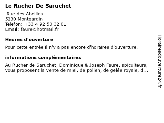 Au Rucher de Saruchet, Dominique & Joseph Faure, apiculteurs, vous proposent la vente de miel, de pollen, de gelée royale, de propolis, de cire, de nougats, de pastilles, de pains d'épices.... No...