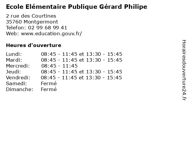 | Lundi | 08:45-11:45 et 13:30-15:45 |