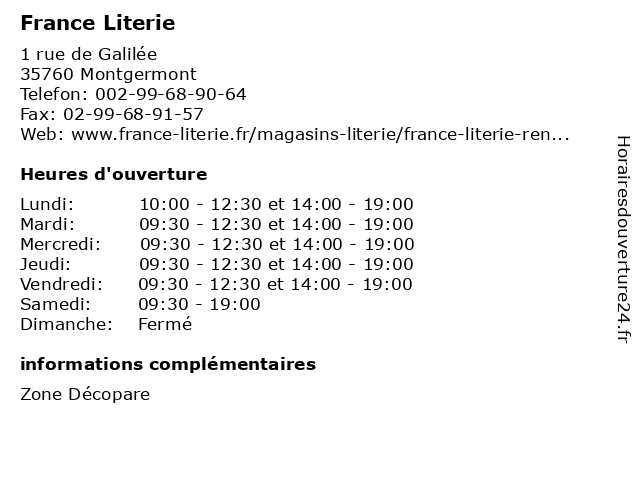 | Mardi | 09:30-12:30 et 14:00-19:00 |