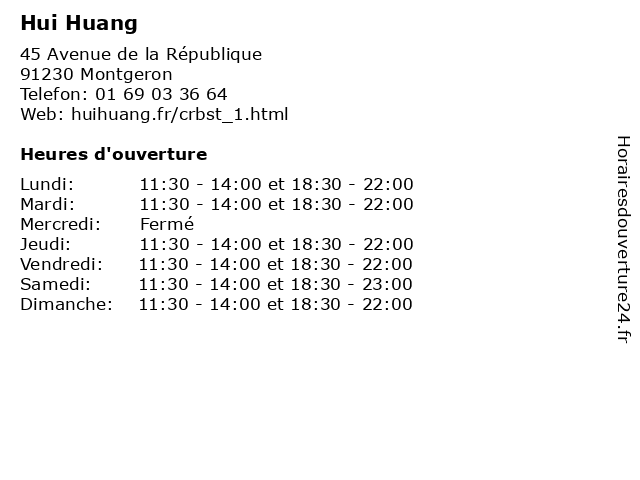 | Lundi | 11:30-14:00 et 18:30-22:00 |