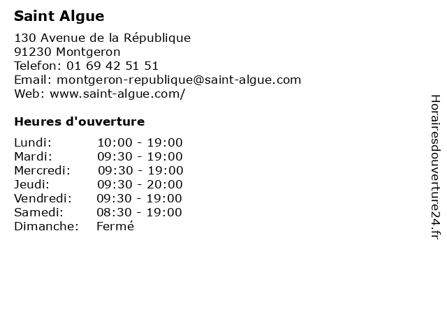 | Samedi | 08:30-19:00 |
