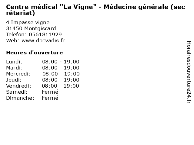 Termes de recherche pour Centre médical "La Vigne" - Médecine générale (secrétariat):centre, générale, medecine, santé, medical, secretariat, docteur, consultation, "la, vigne" |