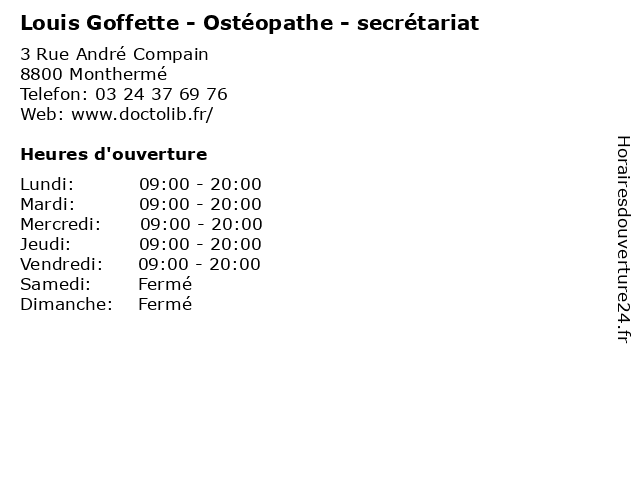 Termes de recherche pour Louis Goffette - Ostéopathe - secrétariat:louis, medecine, secretariat, docteur, médecin, ostéopathe, goffette |