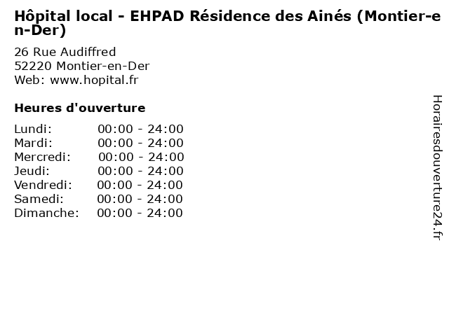 Termes de recherche pour Hôpital local - EHPAD Résidence des Ainés (Montier-en-Der):en, der, montier, des, hopital, santé, résidence, ainés, docteur, local, médecins, ehpad |