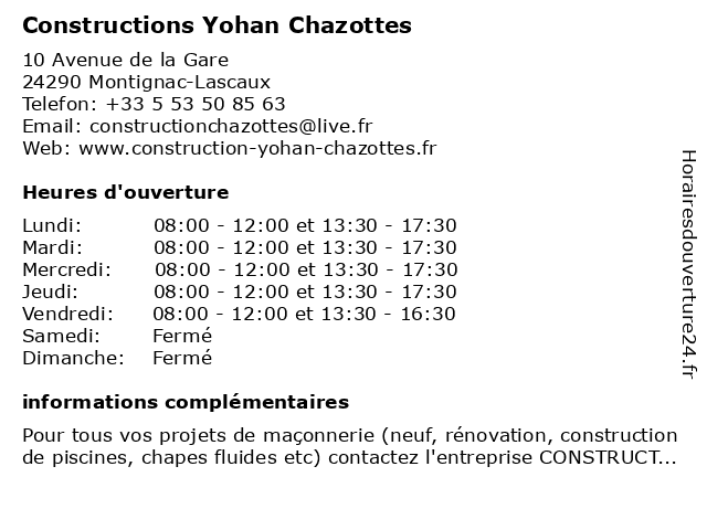 | Mardi | 08:00-12:00 et 13:30-17:30 |