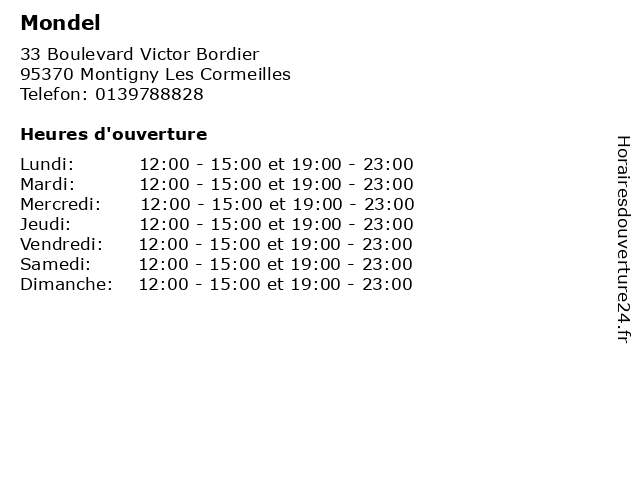 Lundi | 12:00-15:00 et 19:00-23:00 |