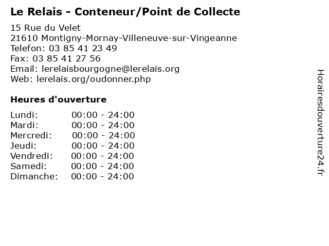 Termes de recherche pour Le Relais - Conteneur/Point de Collecte:relais, le, de, vêtements, point, collecte, dons, conteneur/point |
