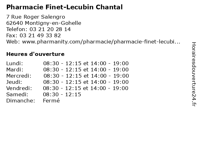 | Lundi | 08:30-12:15 et 14:00-19:00 |