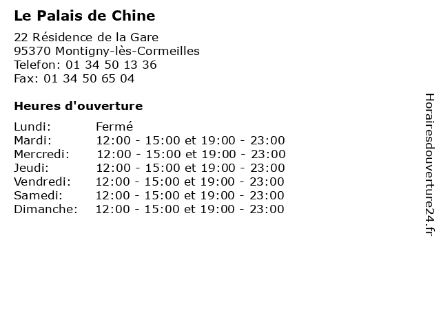 | Dimanche | 12:00-15:00 et 19:00-23:00 |