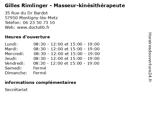 | Jeudi | 08:30-12:00 et 15:00-19:00 |