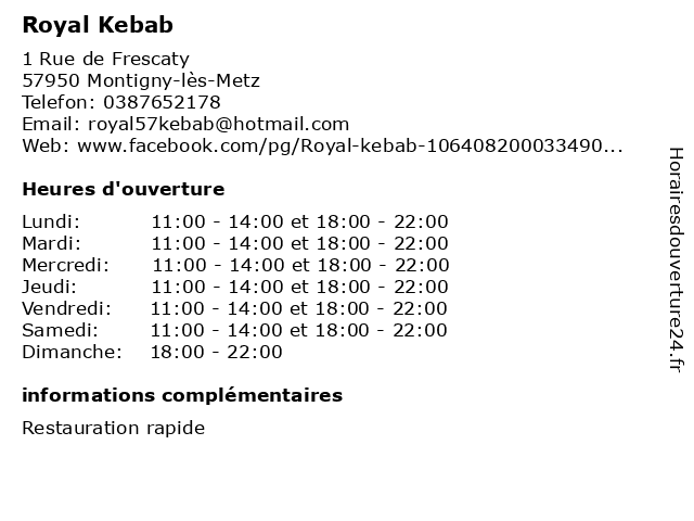 | Samedi | 11:00-14:00 et 18:00-22:00 |