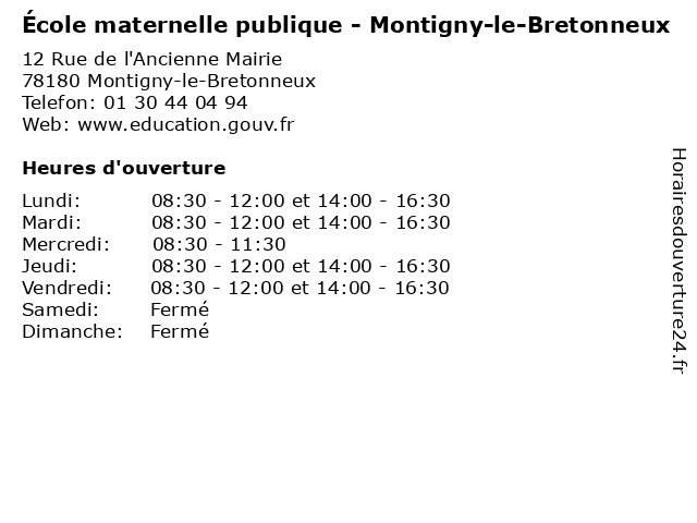 | Mardi | 08:30-12:00 et 14:00-16:30 |