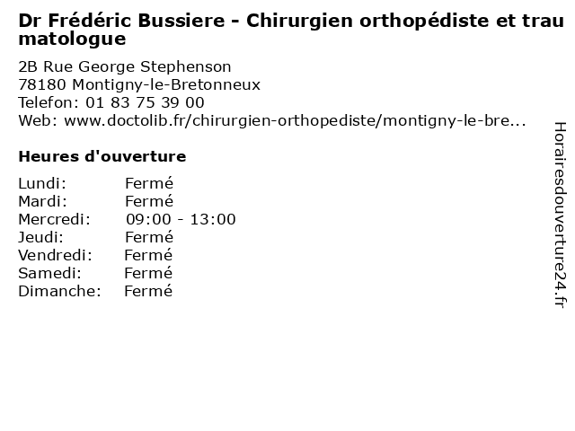 1 Dr Gildas Ducharne - Chirurgien orthopédiste et traumatologue (Distance: 0,00 km) 2b Rue George Stephenson, 78180 Montigny-le-Bretonneux chirurgien, docteur, dr, ducharne, et, gildas, orthopédiste, sante, soins, traumatologue 2 Messieurs Damien & Régis Camier - Orthopédiste Orthésistes Orthèse de la Main - Semelles Orthopédiques - Podologie (Consultation sur rendez-vous) (Distance: 0,06 km) 2 Rue George Stephenson, 78180 Montigny-le-Bretonneux camier, consultation, damien, de, docteur, la, main, medecins, messieurs, orthopédiques, orthopédiste, orthèse, orthésistes, podologie, rendez, régis, santé, semelles, sur, vous 3 Dr Amalio Castanedo - Chirurgien orthopédiste et traumatologue (Distance: 0,06 km) 2 Rue George Stephenson, 78180 Montigny-le-Bretonneux amalio, castanedo, chirurgie, chirurgien, consultation, de, docteur, dr, et, orthopédiste, traumatologue 4 Dr Gérard Gaumet - Chirurgien orthopédiste et traumatologue (Distance: 0,06 km) 2 Rue George Stephenson, 78180 Montigny-le-Bretonneux chirurgie, chirurgien, consultation, de, docteur, dr, du, et, gaumet, gérard, orthopédiste, traumatologue 5 Dr Amir Hariri - Chirurgien orthopédiste et traumatologue (Distance: 0,06 km) 2 Rue George Stephenson, 78180 Montigny-le-Bretonneux amir, chirurgie, chirurgien, consultation, de, docteur, dr, du, et, hariri, l'epaule, medecins, membre, orthopédiste, rendez, santé, supérieur, sur, traumatologue, vous 6 Dr Raphaël Jameson - Chirurgien orthopédiste - secrétariat (Distance: 6,71 km) 7 Rue de la Porte de Buc, 78000 Versailles chirurgien, consultation, docteur, dr, jameson, med, médecin, médecine, orthopédiste, raphaël, secrétariat, traitement |