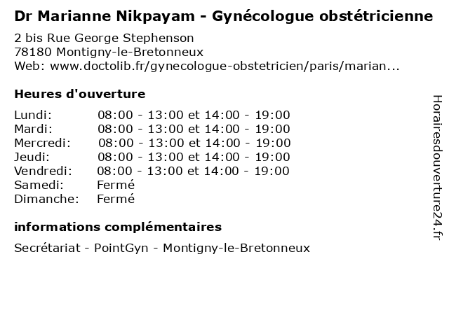 | Lundi | 08:00-13:00 et 14:00-19:00 |
