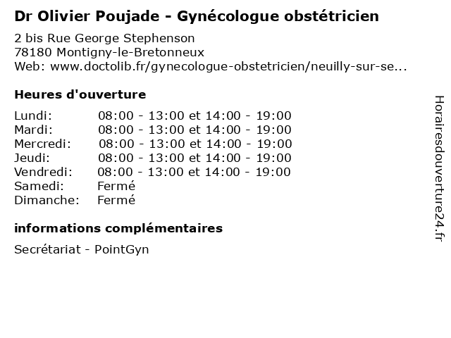 | Jeudi | 08:00-13:00 et 14:00-19:00 |