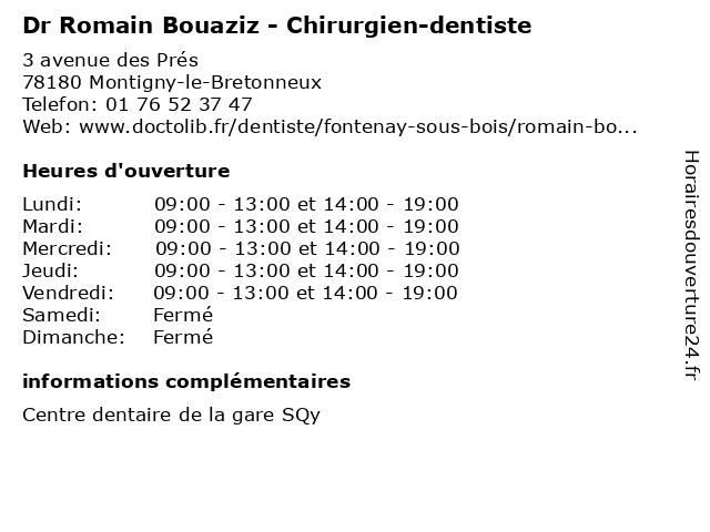 | Lundi | 09:00-13:00 et 14:00-19:00 |
