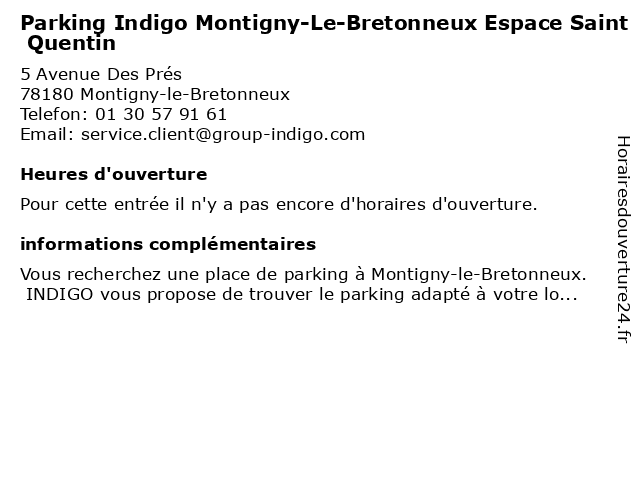 | Appeler Parking Indigo Montigny-Le-Bretonneux Espace Saint Quentin | |