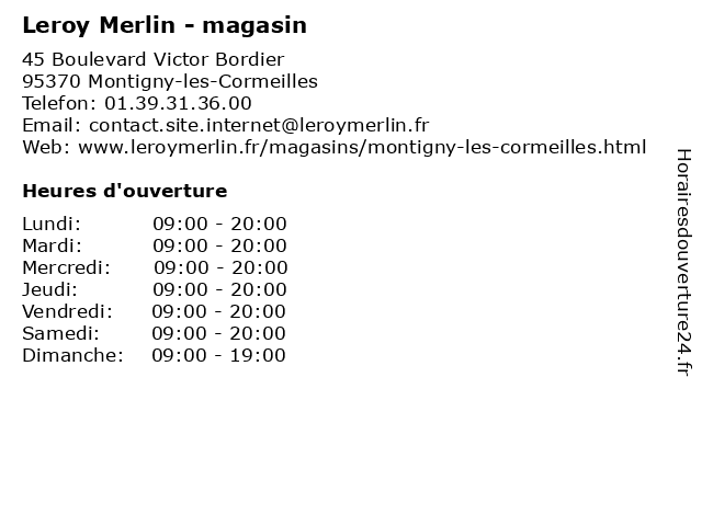 1 Leroy Merlin - magasin (Distance: 9,01 km) 140 Rue de Sartrouville, 92000 Nanterre cuisine, decoration, leroy, magasin, merlin, parquet, terrase jardin 2 Leroy Merlin - magasin (Distance: 11,16 km) 106 avenue du Vieux Chemin de Saint Denis, 92230 Gennevilliers bricolage, leroy, magasin, matériaux, merlin 3 Leroy Merlin - magasin (Distance: 12,45 km) . Route Nationale 1, 95560 Montsoult cuisine, decoration, leroy, magasin, merlin, parquet, terrase jardin 4 Leroy Merlin - magasin (Distance: 13,04 km) . chemin Du Poirier Charles Guérin, 95520 Osny cuisine, decoration, leroy, magasin, merlin, parquet, terrase jardin 5 Leroy Merlin - magasin (Distance: 14,21 km) 17 Place Françoise Dorin, 75017 Paris brico, bricolage, cuisines, deco, jardinage, leroy, magasin, materiaux, merlin, outils, peinture, salle de bain 6 Leroy Merlin - cour des matériaux (Distance: 0,00 km) 45 Boulevard Victor Bordier, 95370 Montigny-les-Cormeilles cour, cuisine, decoration, des, leroy, matériaux, merlin, parquet, terrase jardin |