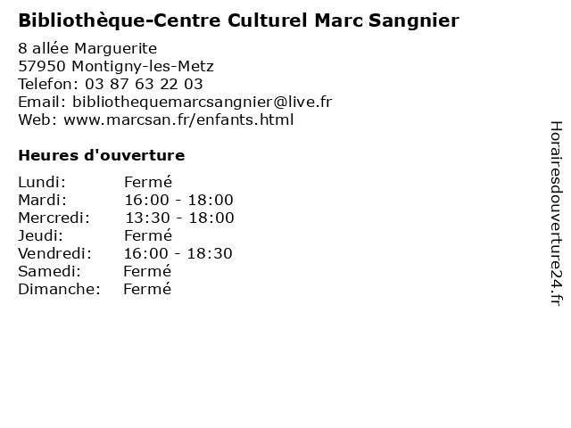 | Mercredi | 13:30-18:00 |