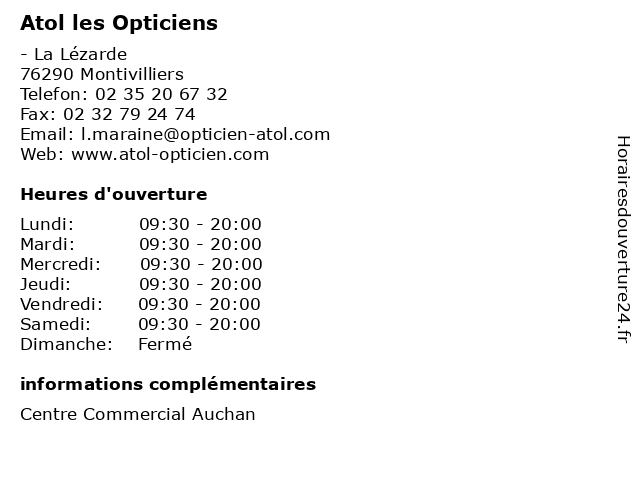 1 Atol Les Opticiens (Distance: 3,04 km) - Oceane, 76700 Gonfreville-l'Orcher atol, lentilles, les, lunettes, montures optiques, opticien, opticiens, verres 2 Atol Mon Opticien (Distance: 0,82 km) Avenue Maréchal Foch, 76290 Montivilliers atol, atol les opticiens, atol mon opticien, lentilles, lunettes de soleil, lunettes de vue, mon, opticien, opticien montivilliers 3 Atol (Distance: 0,88 km) . Centre Commercial La lezarde, 76290 Montivilliers atol, beaute, cafe, chaussures, enfants, lingerie, mode femmes, mode hommes, restaurant, sport 4 Les Opticiens Mutualistes (Distance: 1,51 km) 213 Avenue du 8 Mai 1945, 76600 Le Havre lentilles, les, marques, mutualistes, opticiens, vision et prevention 5 Opticiens Krys (Distance: 5,43 km) - Havre, 76290 Montivilliers femme, homme, krys, lentilles.lunettes, opticiens 6 Les Opticiens Mutualistes (Distance: 5,57 km) 35 Rue de Saint-Quentin, 76620 Le Havre lentilles, les, marques, mutualistes, opticiens, vision et prevention |