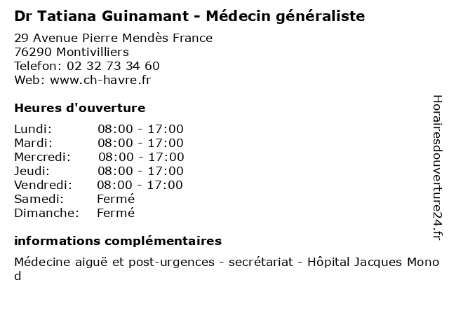 Termes de recherche pour Dr Tatiana Guinamant - Médecin généraliste:le, centre, hopital, jacques, havre, urgence, généraliste, hospitalier, médecin, montivilliers, monod, dr, post, infectieuse, tatiana, guinamant, mpu |