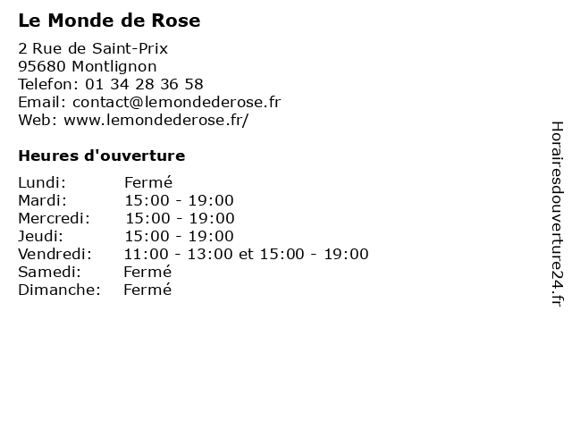 | Vendredi | 11:00-13:00 et 15:00-19:00 |
