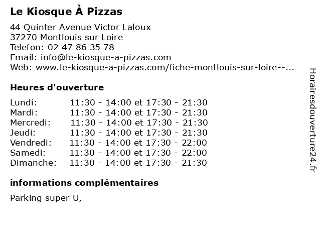 | Vendredi | 11:30-14:00 et 17:30-22:00 |