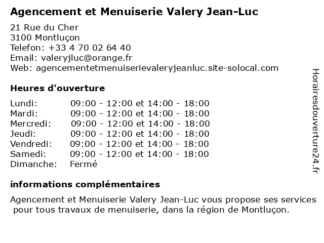 1 Menuiserie Barrere - Isofrance (Distance: 0,31 km) 64 avenue de la République, 03100 Montlucon barrere, fenetres, isofrance, isolement, menuiserie 3 Barrere Menuiserie (Distance: 2,28 km) 84 Avenue claude debussy, 03100 Montlucon barrere, menuiserie, montlucon 4 Gama - Agencement (Distance: 2,66 km) 16 Rue de Stalingrad, 03630 Desertines agencement, agenceurs de magasins, ateliers, desertines, gama, meubles 6 Ait Maamar Jean-Luc (Distance: 8,97 km) Lieu Dit Le Bourg, 03310 St Genest ait, jean, luc, maamar, restaurants |
