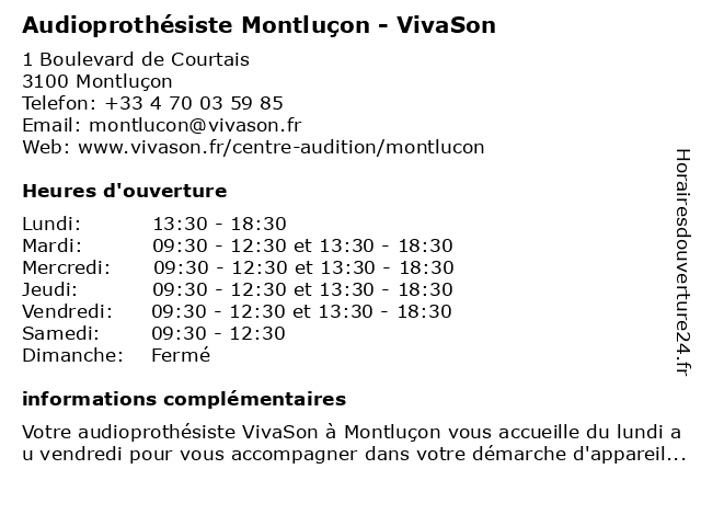 | Mardi | 09:30-12:30 et 13:30-18:30 |