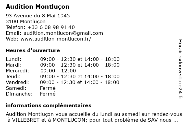| Lundi | 09:00-12:30 et 14:00-18:00 |