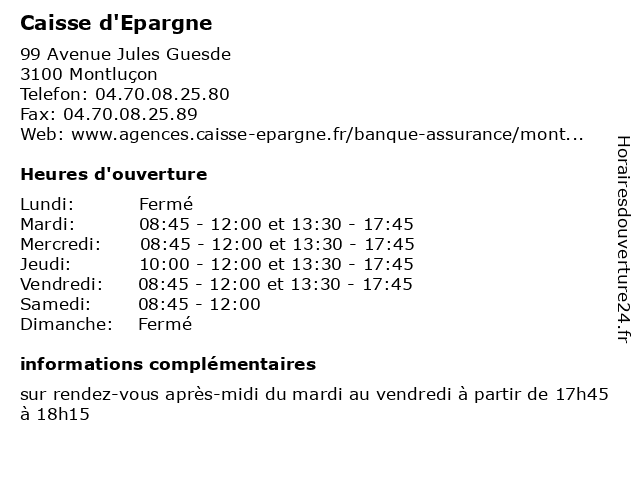 1 Caisse d'Epargne (Distance: 1,52 km) 7 Quai Rouget de Lisle, 03100 Montluçon assurances, banques, caisse, d'epargne, services 2 Caisse d'Epargne (Distance: 1,94 km) 42 Avenue Albert Thomas, 03100 Montlucon assurances, banques, caisse, d'epargne, services 3 Caisse d'Epargne (Distance: 1,98 km) 49 Boulevard de Courtais, 03100 Montluçon assurances, banques, caisse, d'epargne, services 4 Caisse d'Epargne (Distance: 2,76 km) 109 Avenue Général de Gaulle, 03290 Montlucon assurances, banques, caisse, d'epargne, services 5 Caisse d'Epargne (Distance: 4,11 km) 3 Rue Saint-Augustin, 03410 Domérat assurances, banques, caisse, d'epargne, services 6 Caisse d'Epargne (Distance: 13,67 km) 13-15 Rue Jean Jaurès, 03600 Commentry assurances, banques, caisse, d'epargne, services |