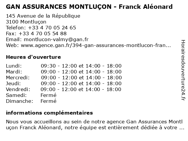 Termes de recherche pour GAN ASSURANCES MONTLUÇON - Franck Aléonard:montlucon, gan, franck, assurances, aleonard |