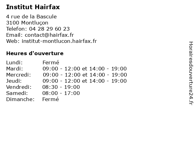 | Mardi | 09:00-12:00 et 14:00-19:00 |