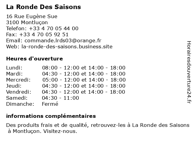 | Vendredi | 04:30-12:00 et 14:00-18:00 |