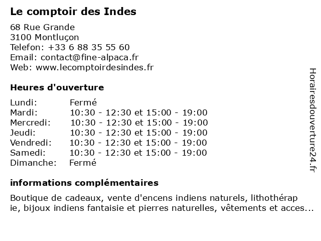 | Mardi | 10:30-12:30 et 15:00-19:00 |