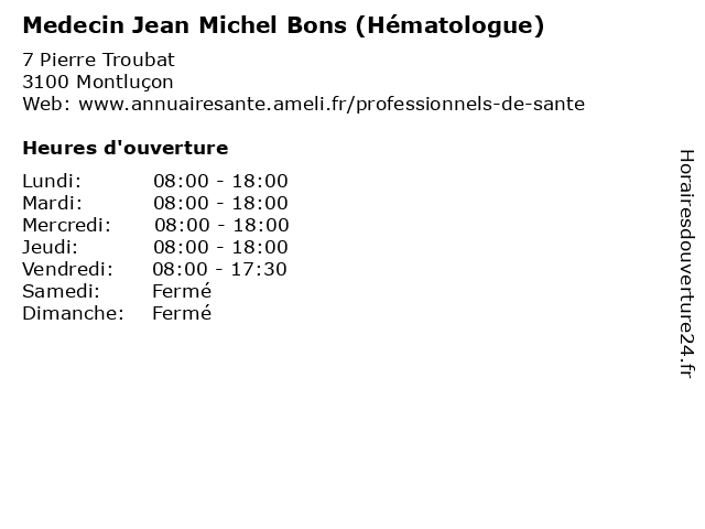 | Vendredi | 08:00-17:30 |