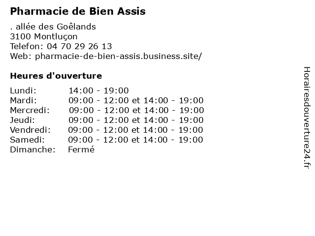 | Mardi | 09:00-12:00 et 14:00-19:00 |
