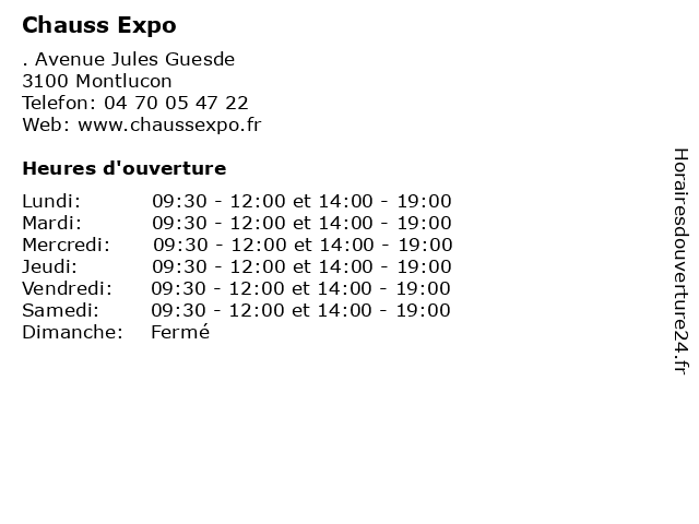 2 Chauss expo (Distance: 42,84 km) 13 Rue nationale, 18200 Saint-Amand-Montrond chauss, chaussure, expo, magasin 5 Partedis - Expo Bains & Carrelage (Distance: 57,20 km) 66 Avenue du Berry, 23000 Guéret bains, carrelage, expo, exposition, partedis, salle 6 Marché Aux Affaires (Distance: 0,69 km) n/a Avenue Jules Guesde, 03100 Montluçon accessoires, affaires, alimentaires, aux, bagagerie, bazar, beauté, boissons, cd, chaussures, destockage, discount, dvd, décoration, hygiène, livres, marché, mode, produits, tapis |
