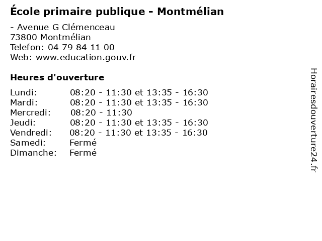 Lundi | 08:20-11:30 et 13:35-16:30 |