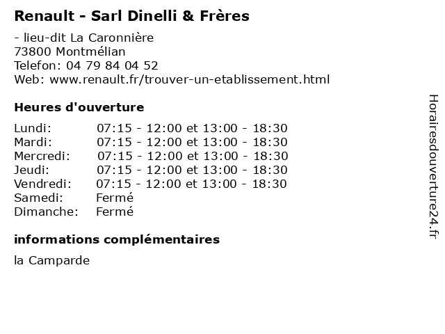 | Lundi | 07:15-12:00 et 13:00-18:30 |