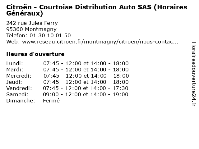 Termes de recherche pour Citroën - Courtoise Distribution Auto SAS (Horaires Généraux):horaires, auto, services, sas, véhicules, distribution, citroen, généraux, courtoise |