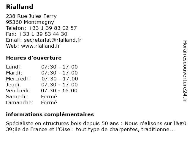 | Samedi | Fermé |