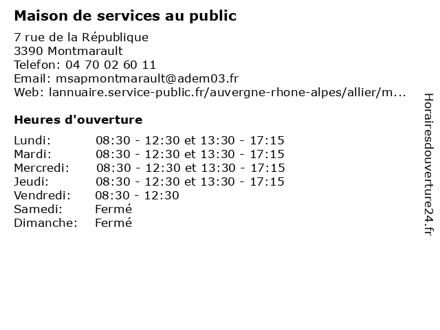 Lundi | 08:30-12:30 et 13:30-17:15 |