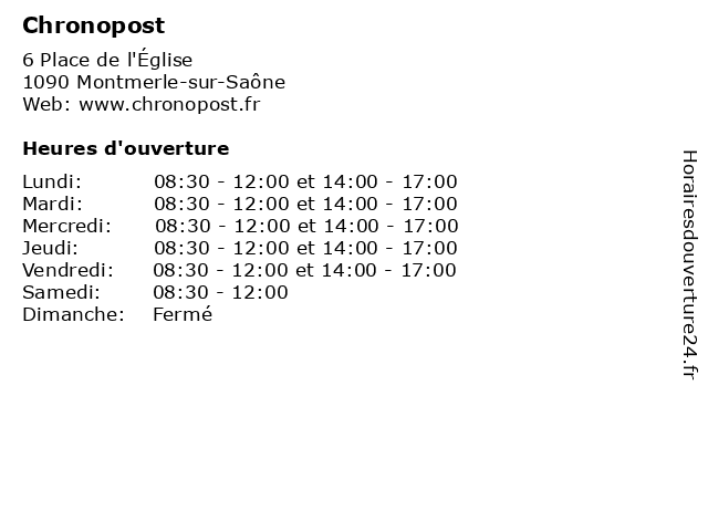 1 Chronopost (Distance: 0,13 km) 9 Rue de Macon, 01090 Montmerle-sur-Saône chronopost, expédition, livraison, services 2 Chronopost (Distance: 3,25 km) 7 Rue de la Poste, 69220 Belleville chronopost, expédition, livraison, services 3 Chronopost (Distance: 3,27 km) 12 Rue du 14-Juillet, 69220 Belleville chronopost, expédition, livraison, services 4 Chronopost (Distance: 3,32 km) 130 Place de l'Église, 69830 St Georges de Reneins chronopost, expédition, livraison, services 5 Chronopost (Distance: 3,41 km) . Rue du Centre, 01090 Guereins chronopost, expédition, livraison, services 6 Chronopost (Distance: 3,54 km) 143 Rue de la République, 69220 Belleville chronopost, expédition, livraison, services |