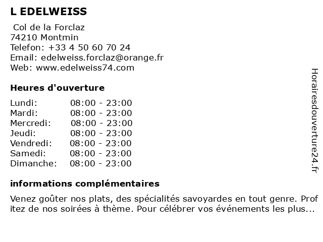 | Samedi | 08:00-23:00 |