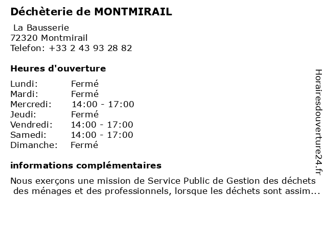 Termes de recherche pour Déchèterie de MONTMIRAIL:de, montmirail, déchèterie |
