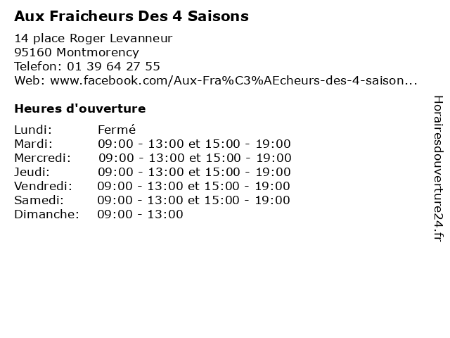 | Mercredi | 09:00-13:00 et 15:00-19:00 |